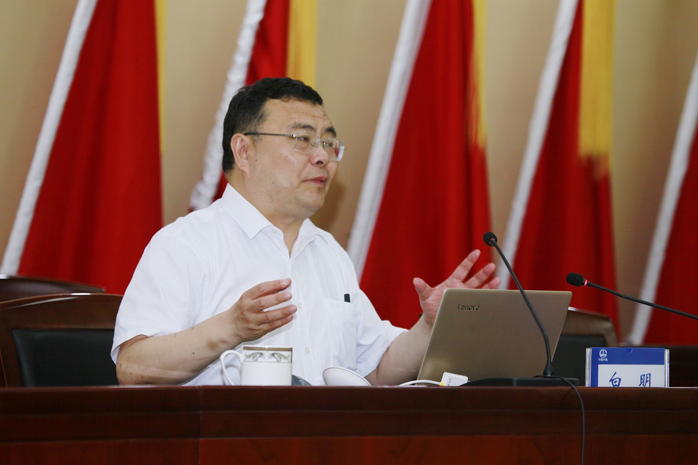 6月26日上午,中鐵設(shè)計集團(tuán)黨委舉行“不忘初心,牢記使命” 主題教育專題報告會。邀請商務(wù)部國際貿(mào)易經(jīng)濟合作研究院國際市場研究所副所長、經(jīng)濟學(xué)博士、博士生導(dǎo)師白明同志做了關(guān)于中美經(jīng)貿(mào)摩擦有關(guān)內(nèi)容的專題輔導(dǎo)報告。集團(tuán)黨委副書記、主題教育工作領(lǐng)導(dǎo)小組副組長吳俊誠主持報告會。集團(tuán)公司黨委書記、董事長李壽兵,總經(jīng)理王洪宇,其他領(lǐng)導(dǎo)班子成員及高管出席報告會。本部機關(guān)各部門、各生產(chǎn)單位副處以上領(lǐng)導(dǎo)干部,紀(jì)檢監(jiān)察專兼職干部共計130余人參加專題報告會。