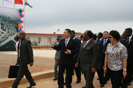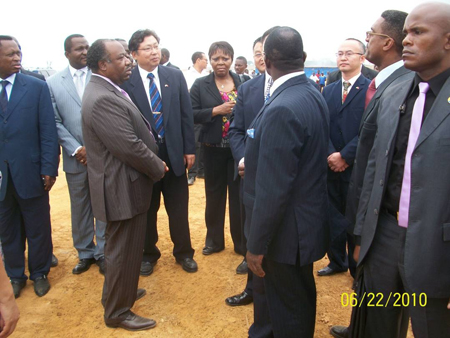 當(dāng)?shù)貢r間2010年6月22日上午11:00,加蓬共和國總統(tǒng)阿里•邦戈到訪我援建加蓬體育場工地,阿里•邦戈總統(tǒng)首先聽取了中方有關(guān)單位人員的工程進(jìn)度匯報,然后在我駐加使館李富順大使和胡平參贊的陪同下參觀了施工現(xiàn)場。參觀過程中,阿里•邦戈總統(tǒng)對我援助加蓬體育場的優(yōu)質(zhì)設(shè)計和施工進(jìn)度非常滿意,同時對中方大力支持加方承辦2012年非洲杯足球賽,并為加蓬設(shè)計了一座現(xiàn)代化的體育場表示感謝。他離開時表示今年年底還會再來參觀。