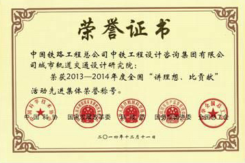日前,在中國(guó)科學(xué)技術(shù)協(xié)會(huì)、中華人民共和國(guó)發(fā)展和改革委員會(huì)、中華人民共和國(guó)科學(xué)技術(shù)部、國(guó)務(wù)院國(guó)有資產(chǎn)監(jiān)督管理委員會(huì)和中華全國(guó)總工會(huì)共同組織的“講理想、比貢獻(xiàn)”活動(dòng)評(píng)比中,中國(guó)鐵路工程總公司中鐵工程設(shè)計(jì)咨詢集團(tuán)有限公司城市軌道交通設(shè)計(jì)研究院榮獲2013-2014年度全國(guó)“講理想、比貢獻(xiàn)”活動(dòng)先進(jìn)集體,并獲得了榮譽(yù)證書(shū)和獎(jiǎng)牌。