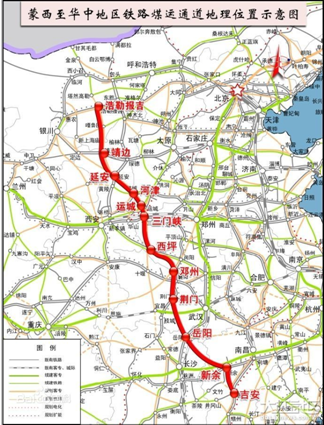 2015年7月28日,蒙西至華中地區(qū)鐵路煤運(yùn)通道工程(簡稱“蒙華鐵路”)全面開工建設(shè)。該線路縱貫內(nèi)蒙古、陜西、山西、河南、湖北、湖南、江西等7?。▍^(qū)),線路全長1817.2公里,國鐵I級(jí),設(shè)計(jì)速度120km/h,重載鐵路(采用1.2倍的ZH(2005)活載),遠(yuǎn)景年輸送能力規(guī)劃為2.0億噸/年以上,是"北煤南運(yùn)"新的國家戰(zhàn)略運(yùn)輸通道。