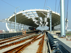 上海軌道交通9號線一期是市政府“十五”計(jì)劃重大工程項(xiàng)目之一,自松江新城站到宜山路站全長31.336公里,沿途設(shè)車站12座,分別為松江新城站,大學(xué)城站,佘山旅游度假區(qū)站,泗涇站、九亭站、七寶站、外環(huán)線站、合川路站、虹梅路站、桂林路站、宜山路站。九號現(xiàn)一期工程松江段全長20.5公里,設(shè)車站6座,其中松江新城站和九亭站為地下車站,并在九亭設(shè)車輛段及基地一個(gè),供列車??烤S修之用。中鐵咨詢集團(tuán)承擔(dān)了佘山~九亭段區(qū)間設(shè)計(jì),其中:高架區(qū)間9.2公里,地面線0.5公里。工程已建成通車。