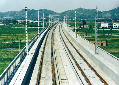 首次在秦沈客運(yùn)專線的沙河特大橋、狗河特大橋上開(kāi)發(fā)了板式無(wú)碴軌道。