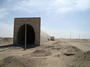 新建臨河至策克鐵路位于內蒙古自治區(qū)境內西北部,東接包蘭線巴彥淖爾市,西至中國與蒙古國邊境阿拉善盟額濟納旗策克口岸站,全線近600公里,中鐵咨詢集團負責該線西段烏蘭敖包至策克416.8公里的設計,其中,新建線路344.3公里,利用在建嘉峪關至策克鐵路改建70.5公里。該線為國鐵Ⅱ級、預留國鐵Ⅰ級條件,單線,列車時速120公里/小時,內燃牽引、預留電氣化條件,牽引質量5000噸,到發(fā)線有效長1050米。工程已竣工通車。